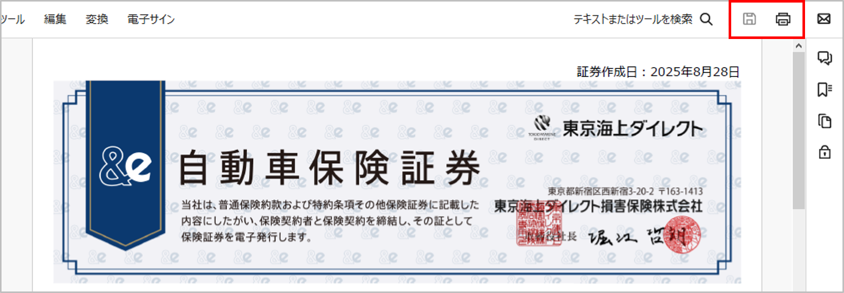 保険証券・契約証明書・変更承認書のダウンロード・印刷方法を知りたい