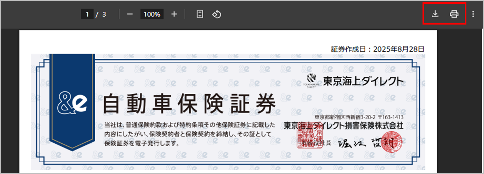 保険証券・契約証明書・変更承認書は、以下の手順でダウンロード・印刷してください。
