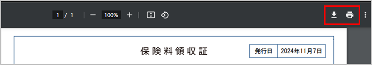 5.領収証が表示されたら、ブラウザ上でダウンロードや印刷を選択