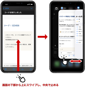 1.「コード入力」画面を開いたまま、スマートフォンのホーム画面に戻る