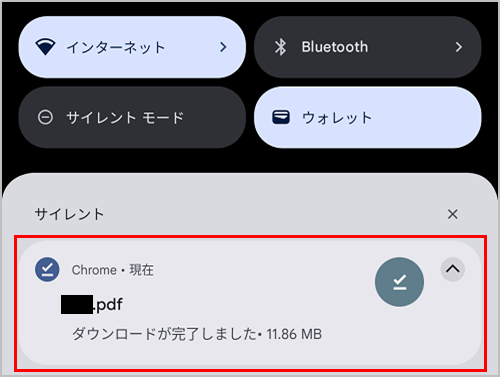 ダウンロードが完了するとスマートフォンの通知欄に表示されますので、通知をタップし内容をご確認ください。