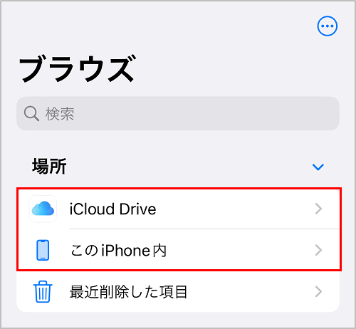 2.「iCloud Drive」もしくは「このiPhone内」をタップ(お客さまの設定により異なります)